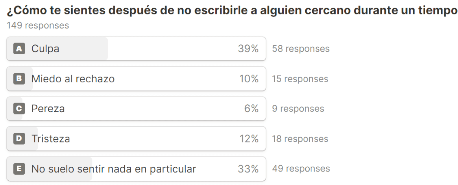 Respondents experience guilt for not maintaining contact with people close to them for extended periods of time.This underlines the importance of designing mechanisms that encourage regular communication, helping to overcome emotional barriers and strengthening personal bonds.