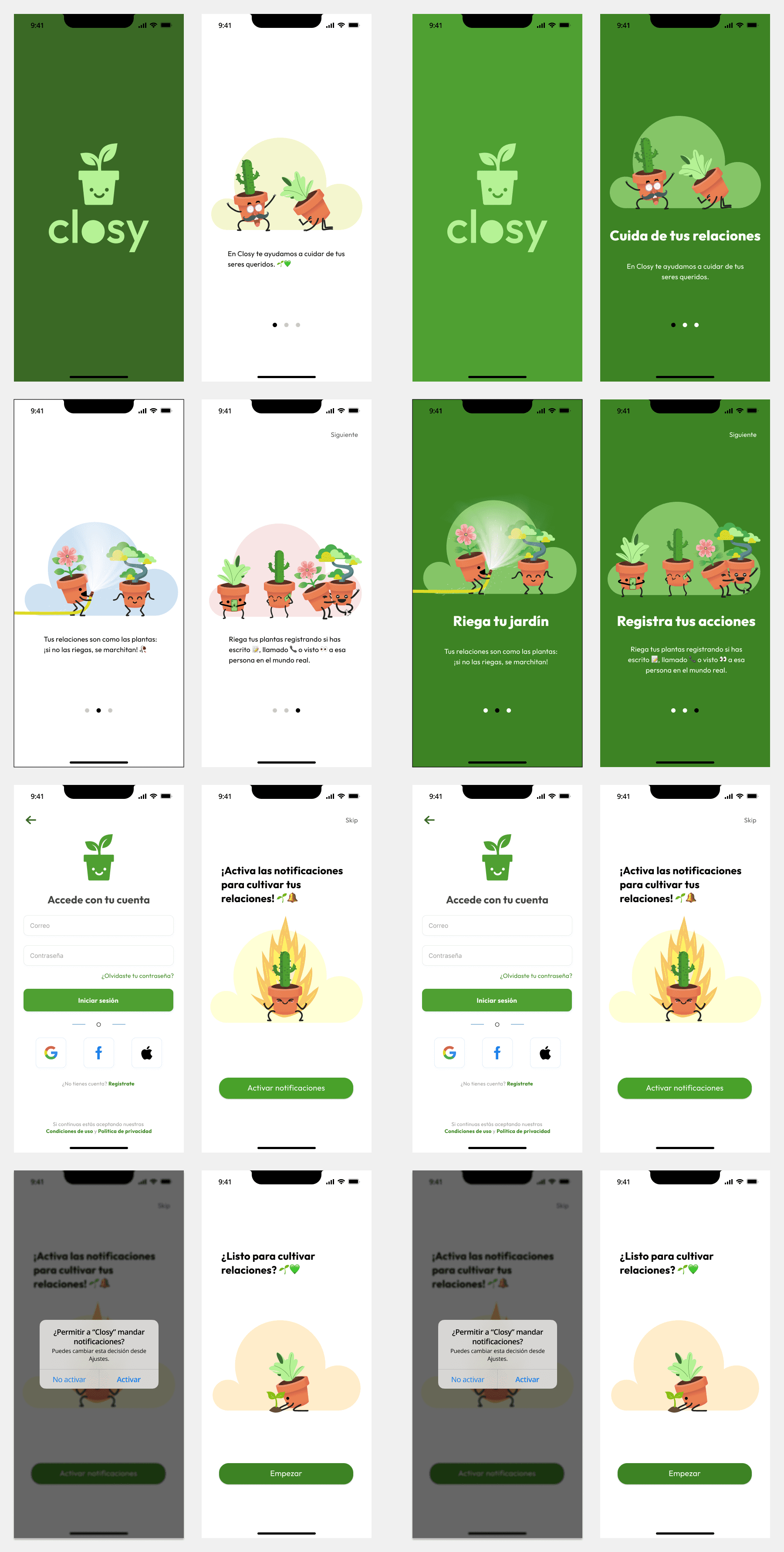 Due to the modification of the plant’s UI, it was necessary to update the tutorial to reflect these changes. Additionally, some copy of the messages was adjusted, and the interface of the pre-watering message was redesigned. Users often ignored the message and didn’t understand what they had to do. These modifications aim to ensure that users clearly understand how and why to water their plants in the Closy app.