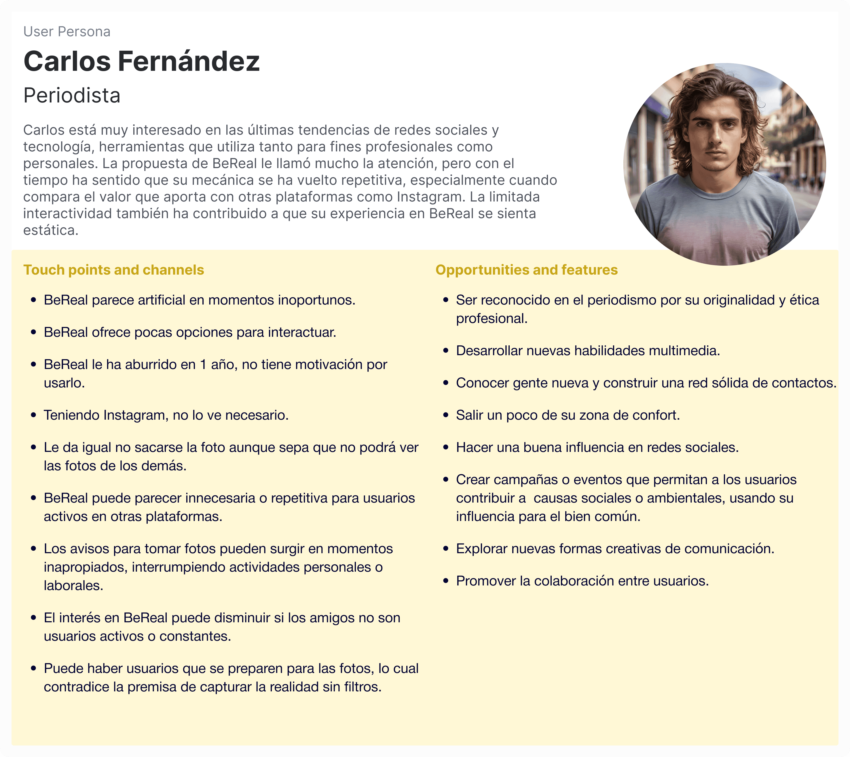 Initially, the app was not directly related to BeReal, although it was going to integrate essential features of BeReal. However, after a deeper analysis, it was decided to join BeReal's branding, following its design line and simplicity to ensure consistency and recognizability in the market.
